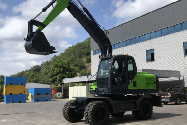 Wheel structure and mobility: As a wheeled excavator, it supports rapid transfer, and the tires can be solid tires (high durability, suitable for complex terrain) or pneumatic tires (reduce ground damage, suitable for sensitive environments). The maximum excavation height is 6 meters, taking into account the ability to work at high altitude.